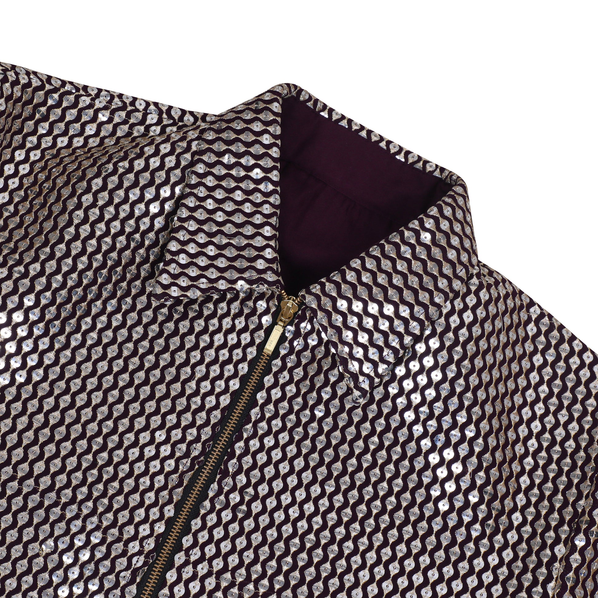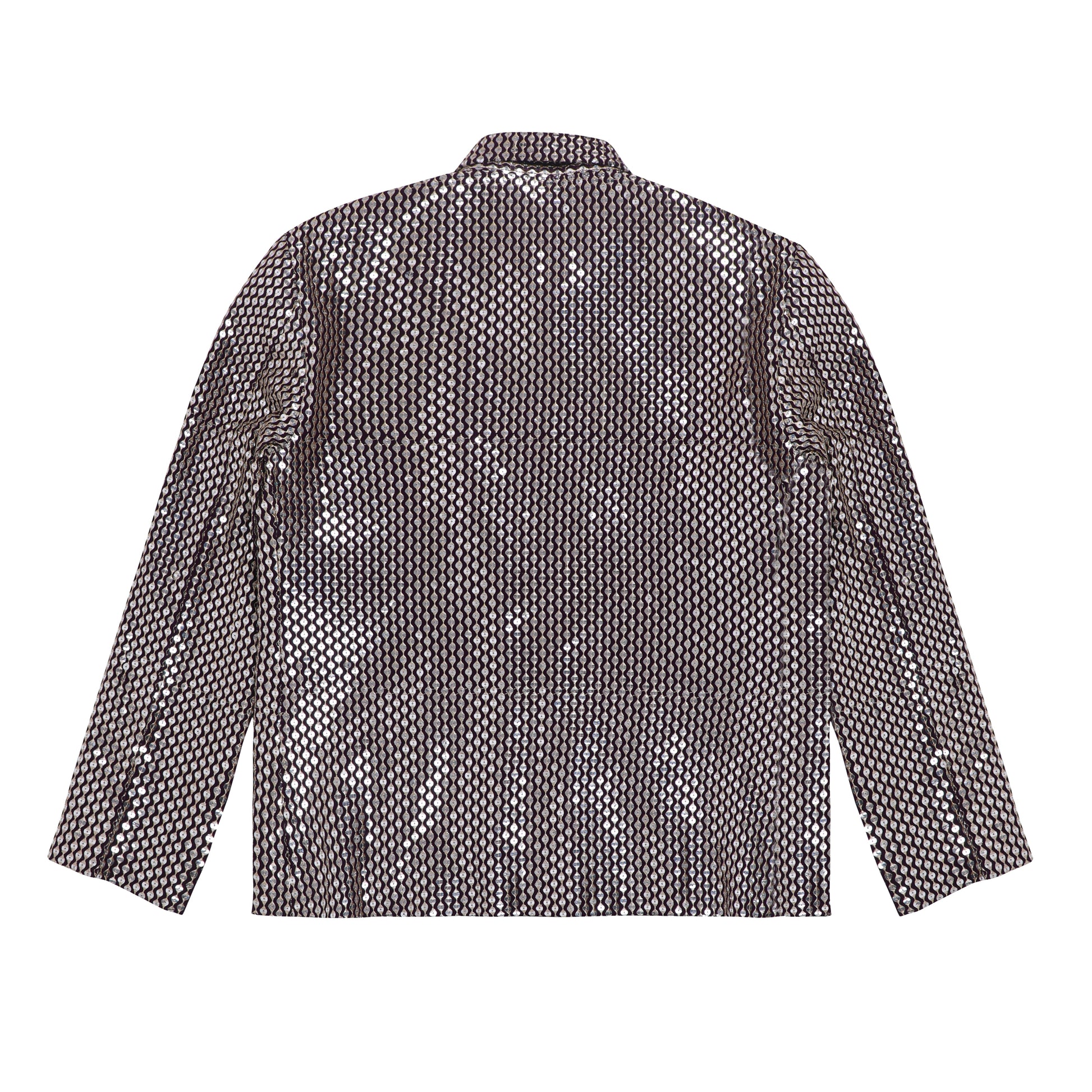 Covered entirely in sculptural silver sequins that ripple like water, it catches and reflects every flicker of light — whether candle, moon, disco ball, or flash. A true celebration of reflection; of the self, of tradition, of glamour. This jacket doesn’t whisper. It glows.